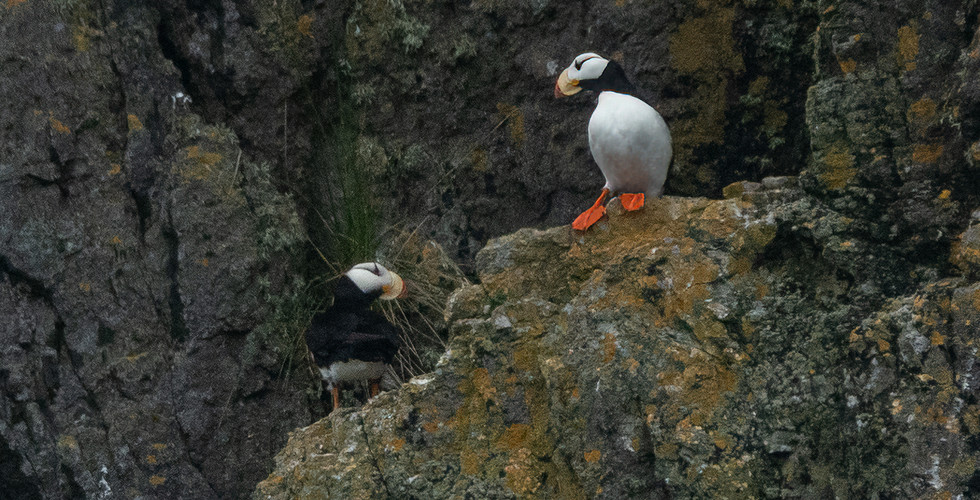 The birds featured in this slideshow are from various parts of Gwaii Haanas. Gulls were a common sight throughout the area. The tufted puffins and horned puffins we spotted were nesting on small islands along the southwestern side of Gwaii Haanas. Puffins tend to choose islands with dirt and grass, where they dig burrows for their eggs during the nesting season.